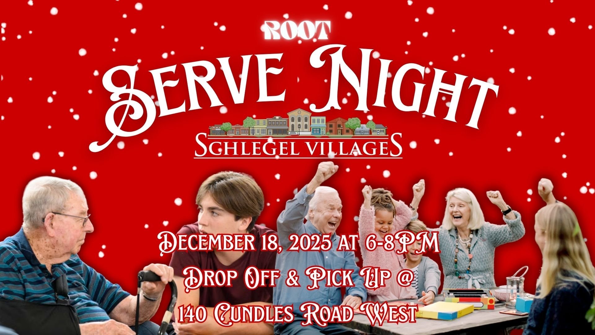 The Root Serve Night @ Schlegel Villages Thursday, December 18, 2025 6:00 p.m. 8:00 p.m. Google Calendar ICS